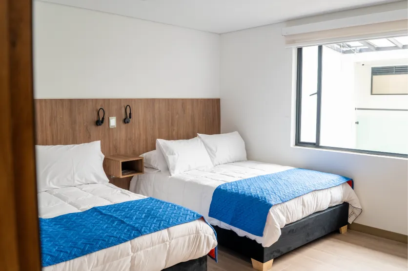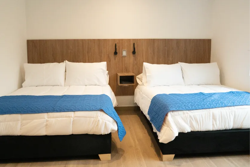 Camas dobles Deluxe con el espacio ideal y acabados premium para mayor confort. Ambiente moderno y una experiencia de descanso sin igual.
