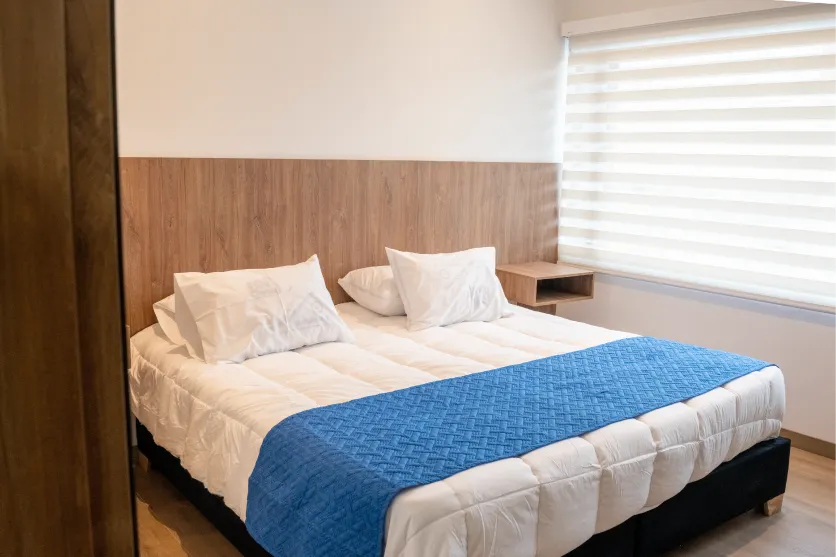 Diseñada para dos. Desfruta de una imponente cama King Size, ambiente íntimo y acabados Deluxe que convierten cada noche en Bogotá en una experiencia memorable.