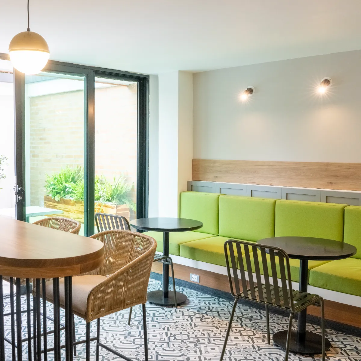 Ademas de confortables habitaciones, pordrás difrutar de zona coworking, terraza y lobby.
